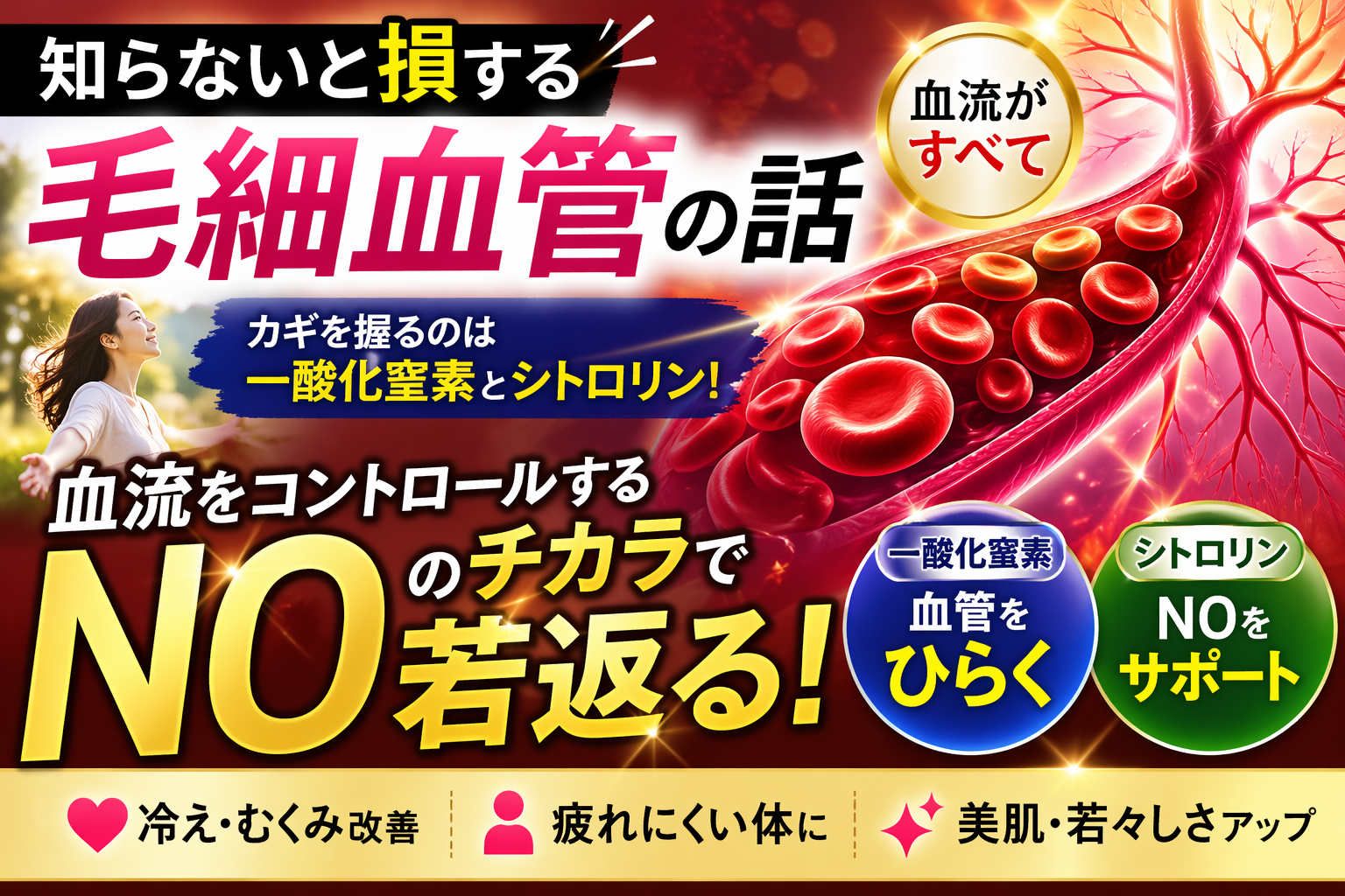 知らないと損する毛細血管の話|血流を左右する一酸化窒素(NO)とシトルリンの働き